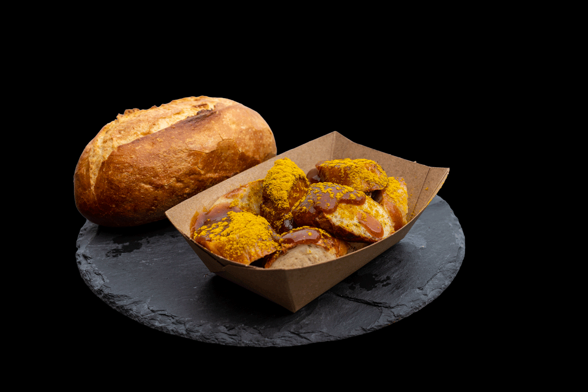 mit klassischer hausgemachter Currysauce oder feuriger Teufelssauce